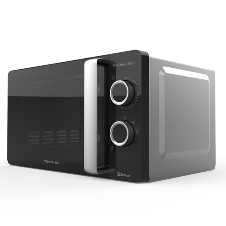 El microondas Cecotec ProClean 3050 redefine la experiencia de cocción diaria. Con una capacidad de 20 litros y una potencia de 700 W, este modelo de encimera destaca por su tecnología avanzada 3DWave, que garantiza un calentamiento uniforme al envolver los alimentos por completo. Su diseño elegante con puerta FullCrystal y acabados metalizados se integra perfectamente en cualquier ambiente contemporáneo.