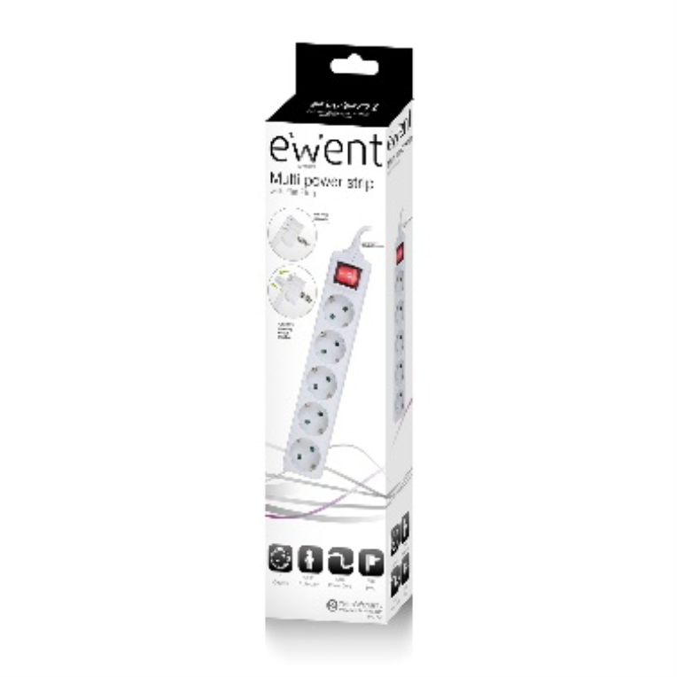 Ewent EW3955 base múltiple 1,5 m 5 salidas AC Interior Blanco